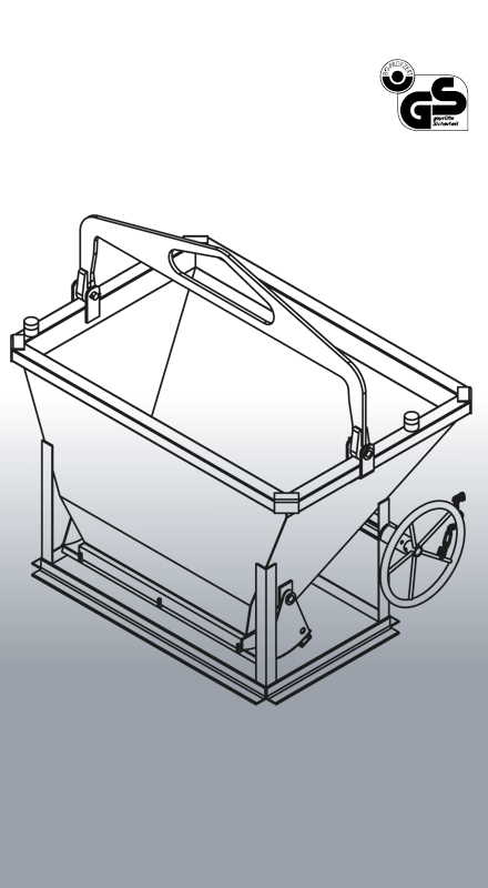 Il silo per calcestruzzo / secchio per calcestruzzo / bomba per calcestruzzo Tipo 1021 H è dotato di una chiusura azionata da manovella. La manovella consente un'operazione semplice e rapida. Di serie è dotato di una catena saldata e testata, che offre ulteriore sicurezza. Tuttavia, il silo non ha un attacco per tubo, ma uno scarico rigido e solido come mostrato nell'immagine.