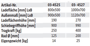 Alu-Magazinwagen (techn. Daten)